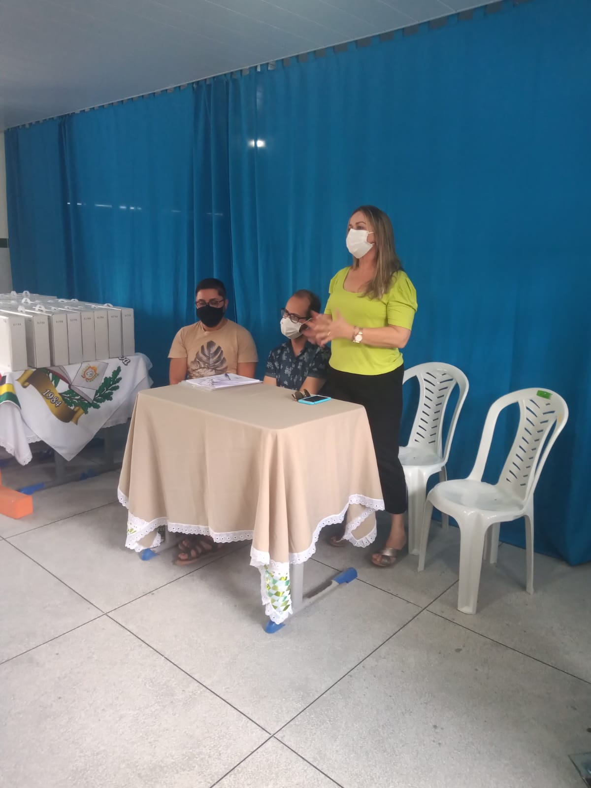 Secretaria de educação entrega notebooks aos professores da rede municipal.